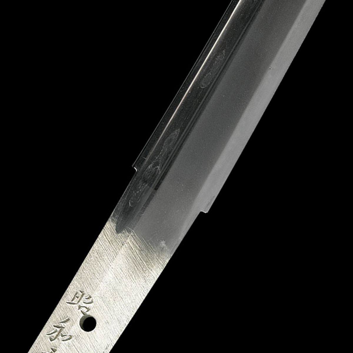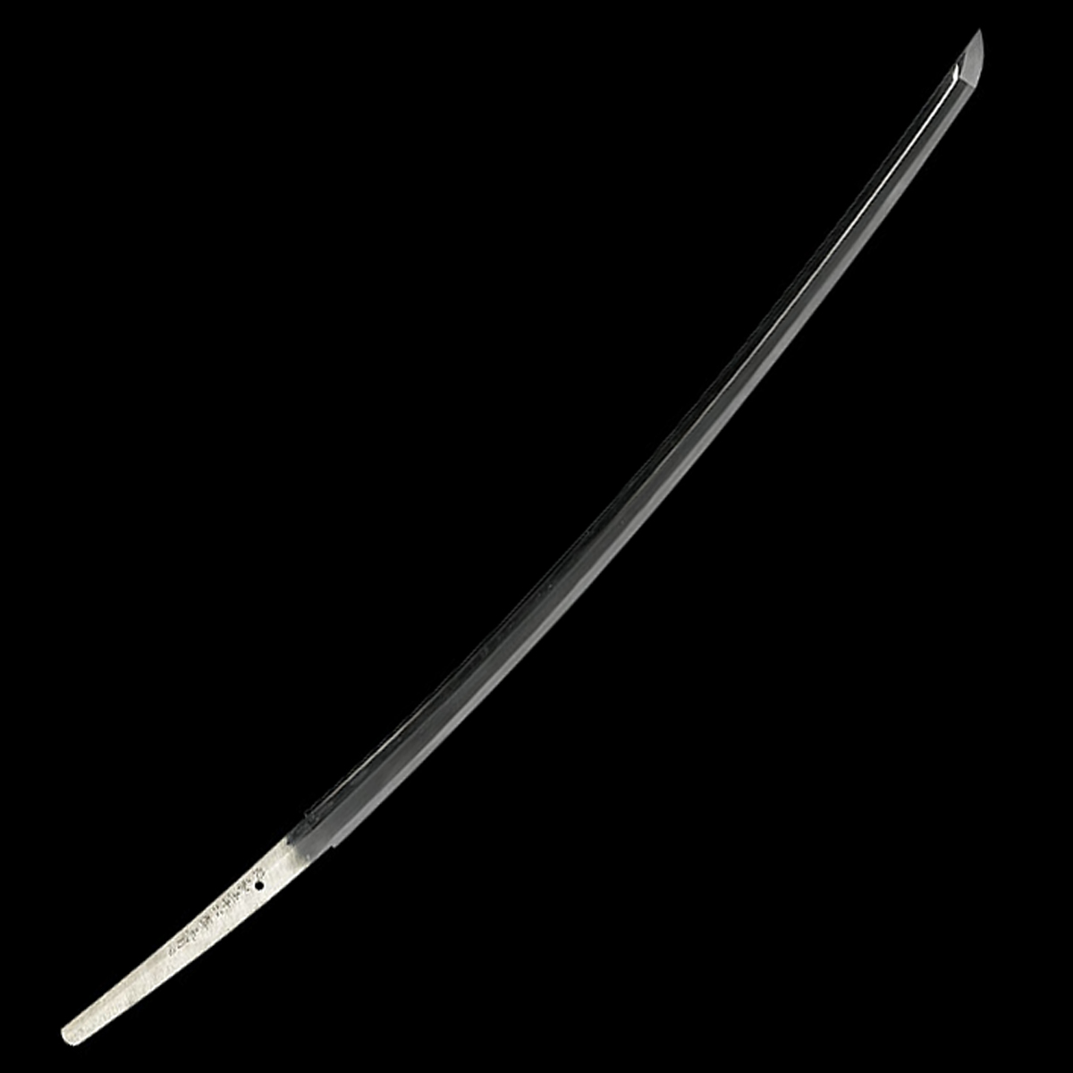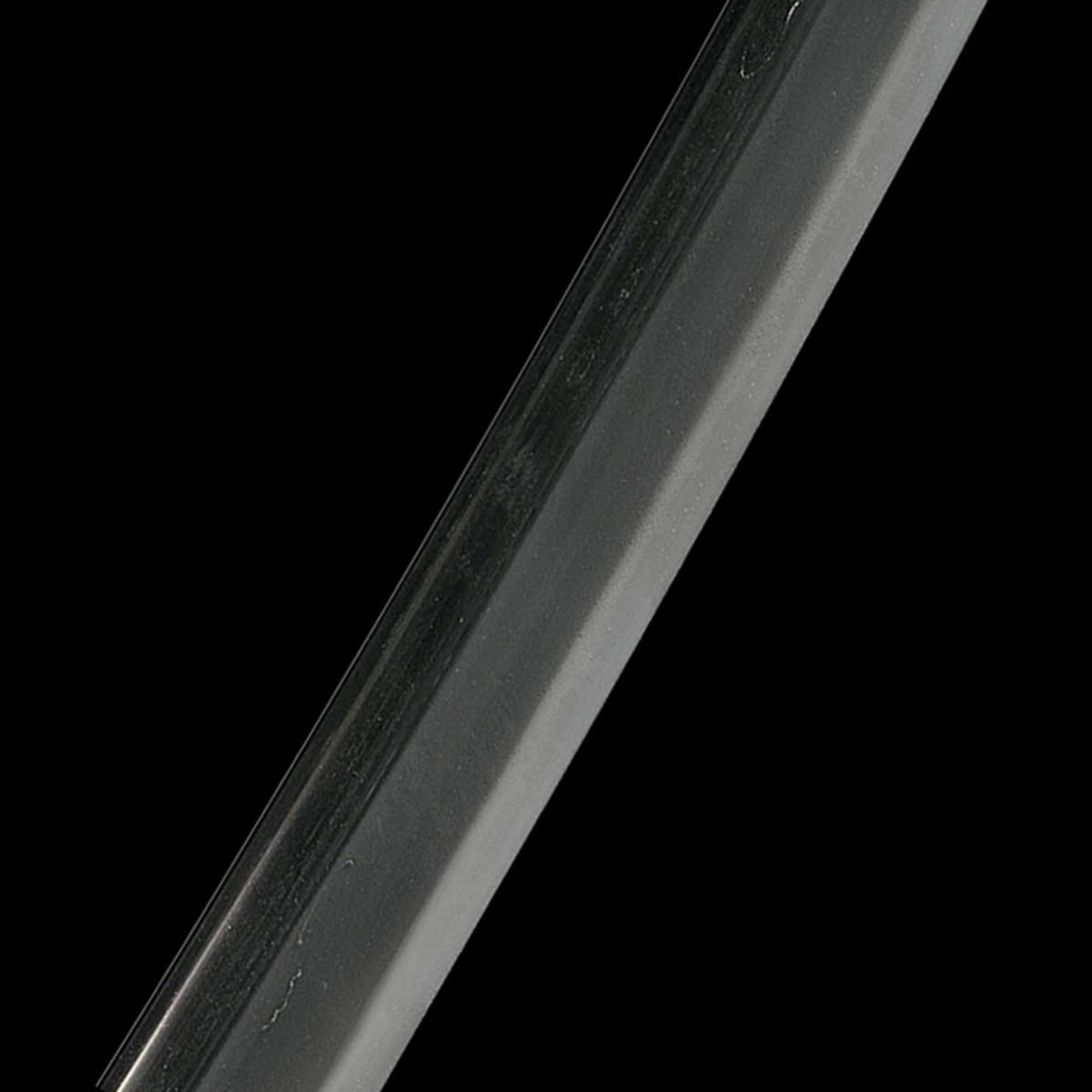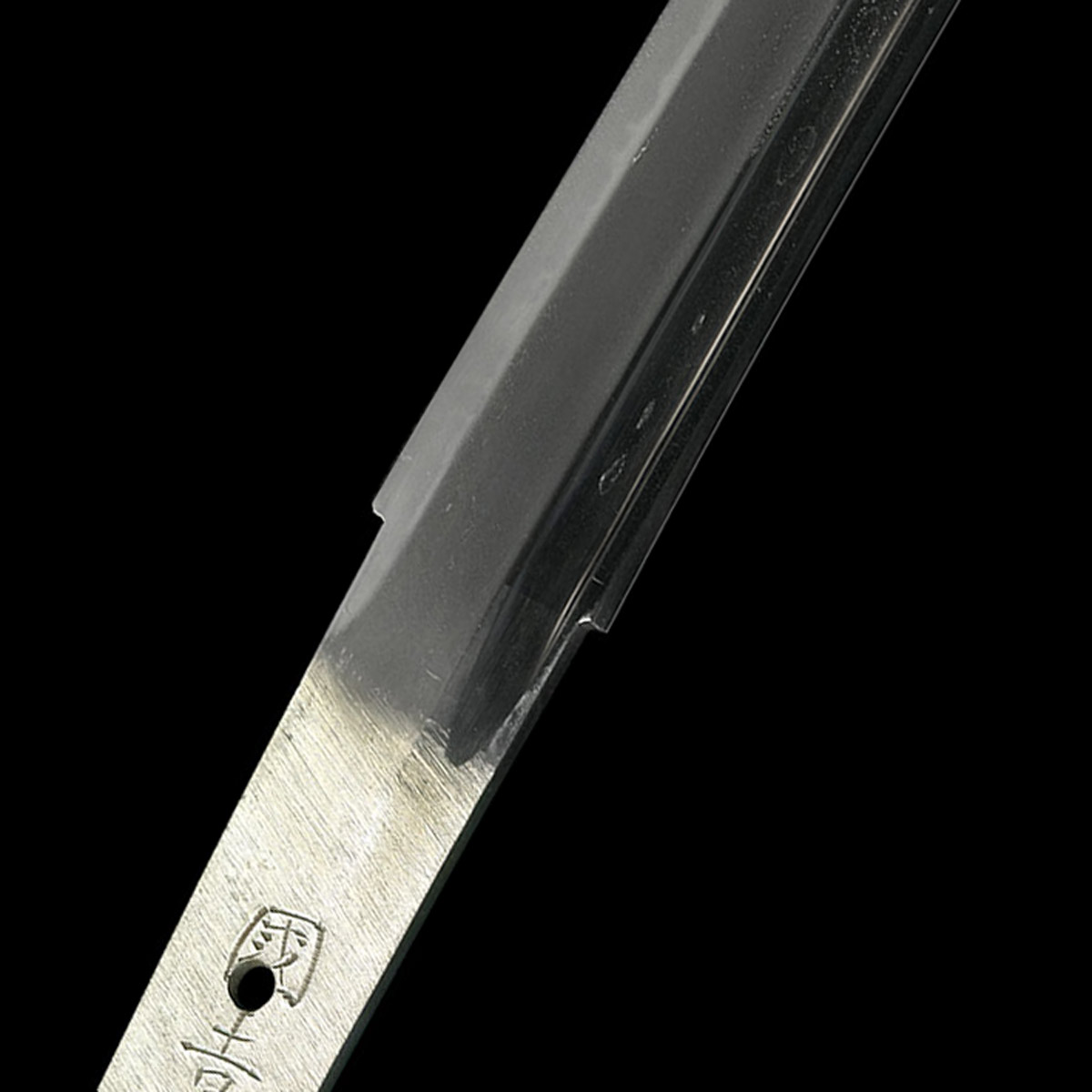 This sword is a masterly replica of a sword by Awataguchi Kuniyoshi from the Kamakura period. The elegant shape shows the typical silhouette of Awataguchi, with a clear difference between the width at the base and at the tip of the blade. The steel structure (Jigane) is made of finely patterned Ko-itame-Hada, carefully forged, which authentically reflects the high quality of Awataguchi steel.