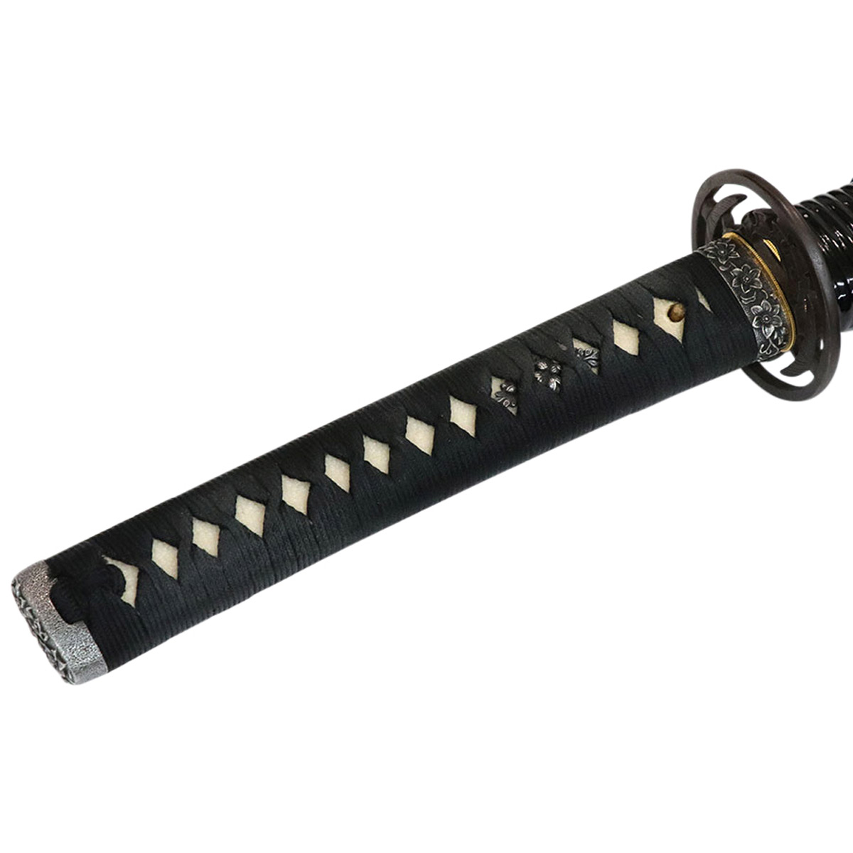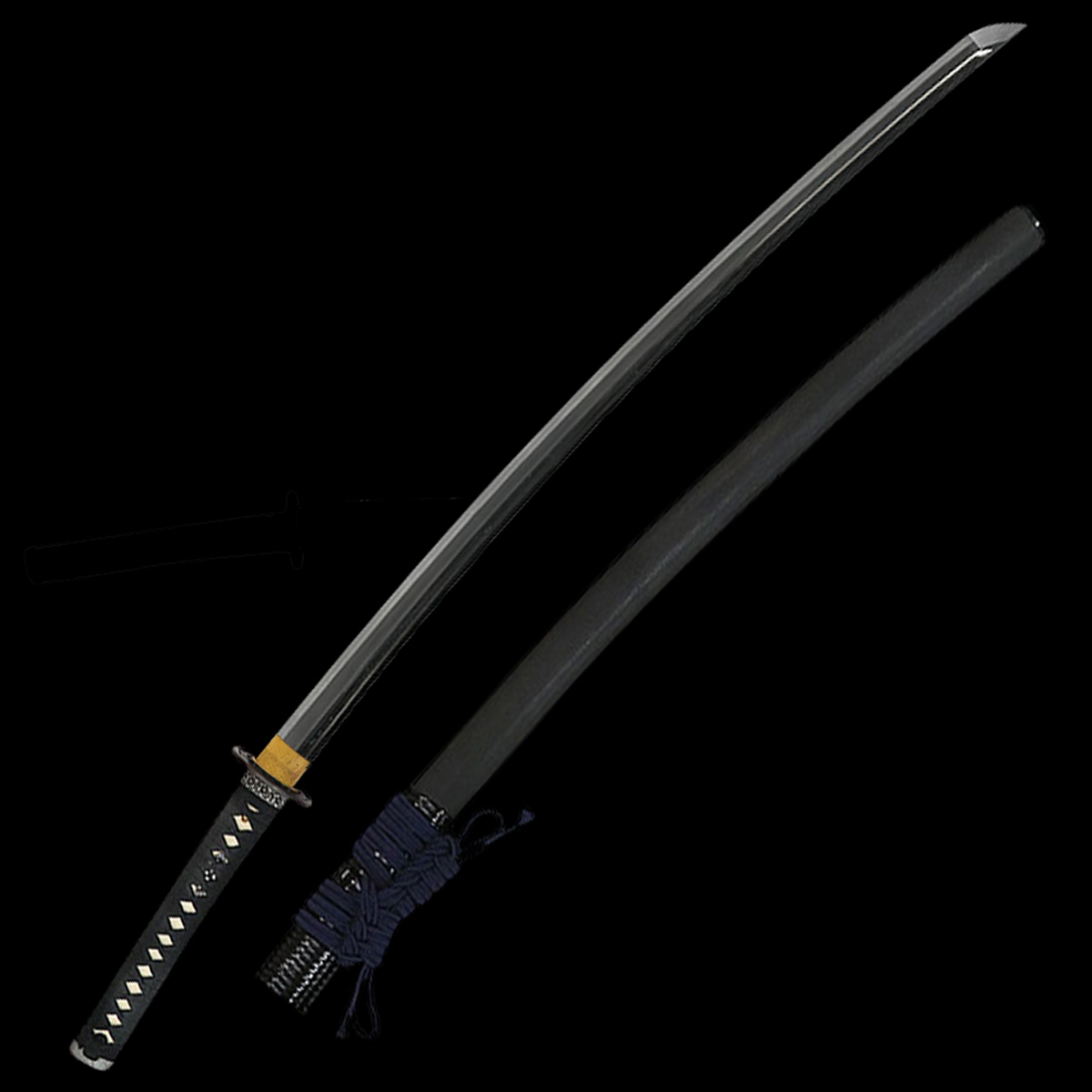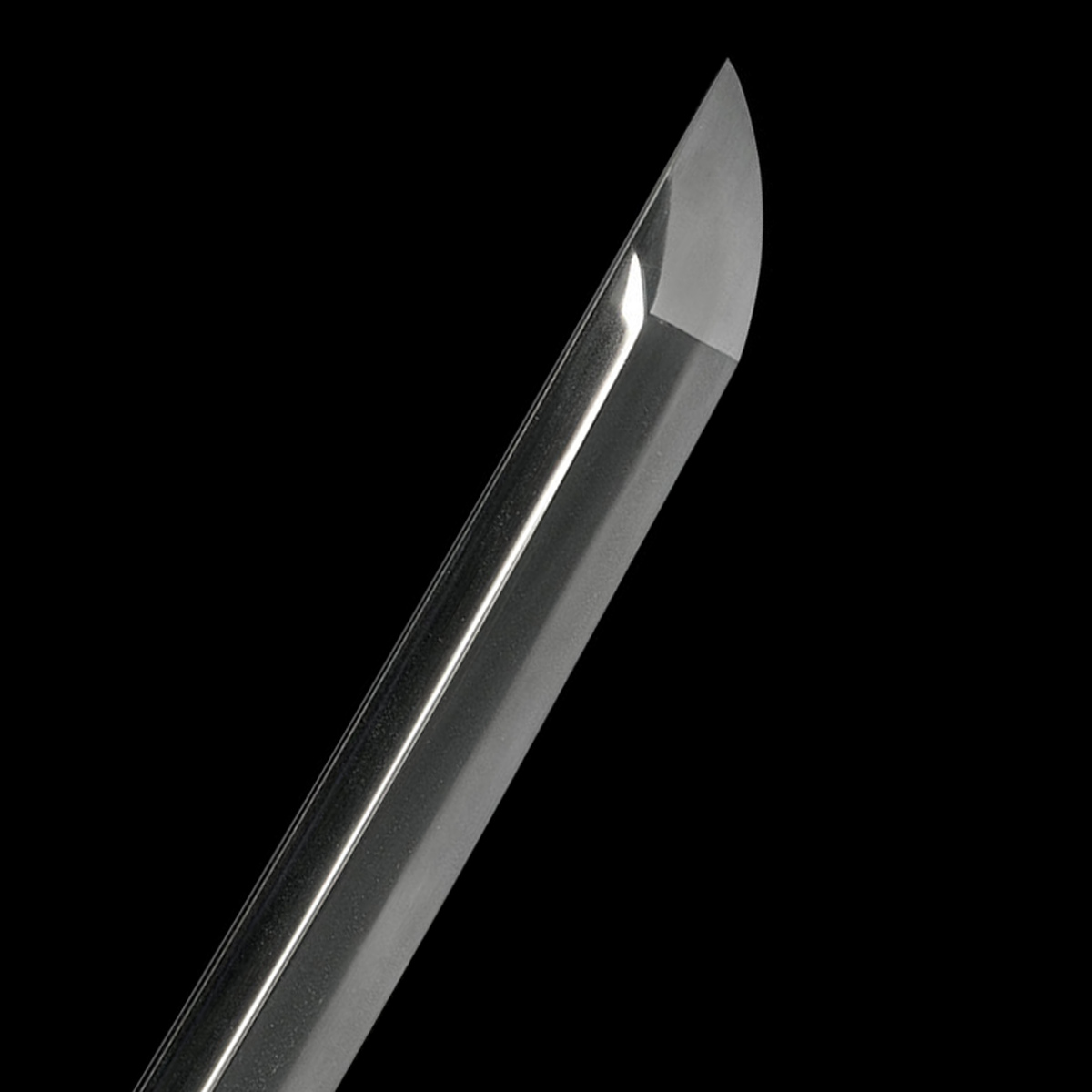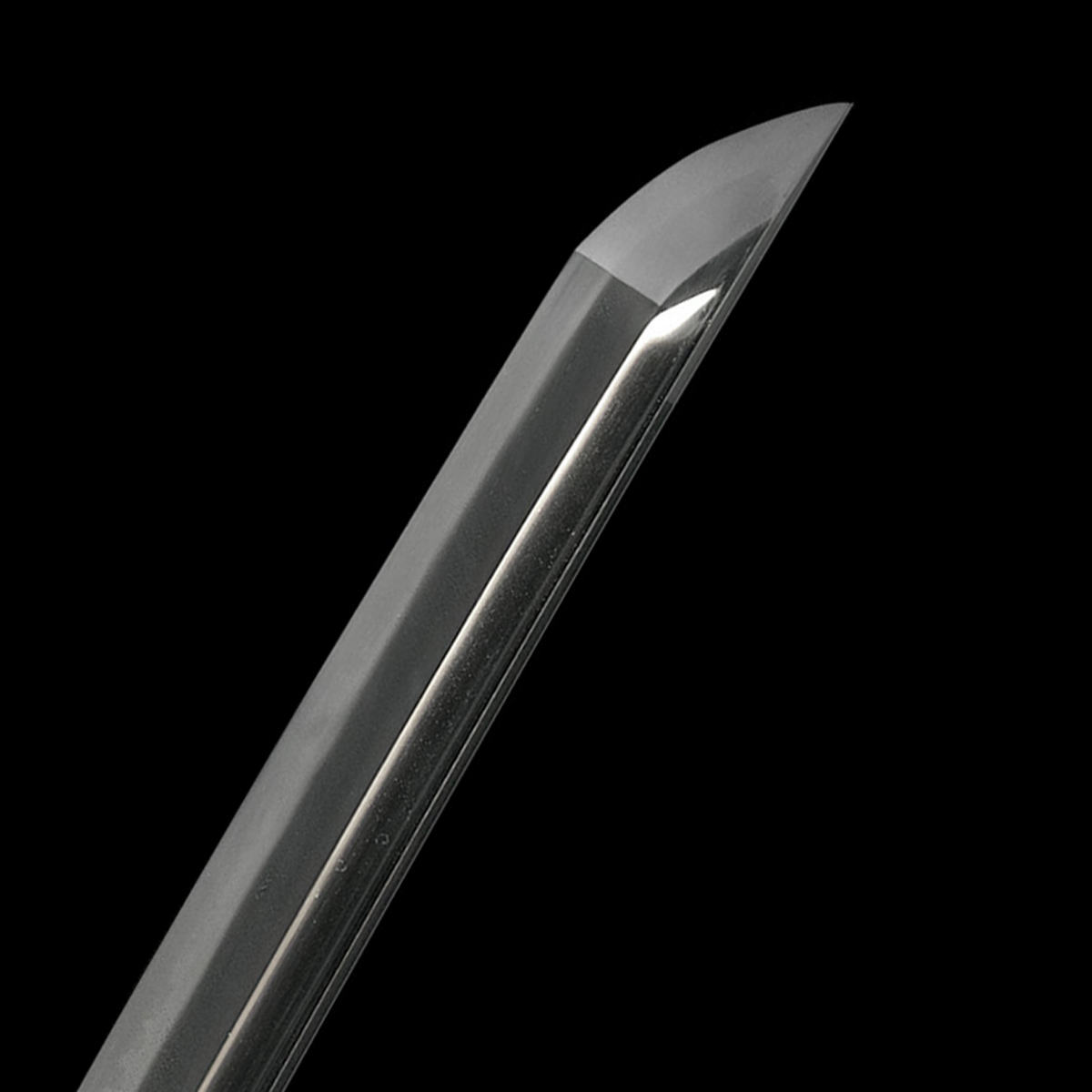 This sword is a masterly replica of a sword by Awataguchi Kuniyoshi from the Kamakura period. The elegant shape shows the typical silhouette of Awataguchi, with a clear difference between the width at the base and at the tip of the blade. The steel structure (Jigane) is made of finely patterned Ko-itame-Hada, carefully forged, which authentically reflects the high quality of Awataguchi steel.