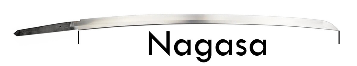 Le nagasa est la longueur de la lame mesurée depuis le munemachi (le point où la lame se termine au dos de la lame) jusqu'à la pointe. Cette mesure est généralement indiquée dans l'ancienne unité de mesure japonaise. La longueur habituelle d'un nagasa est par exemple de 2,4 shaku, soit 72,72 cm.
