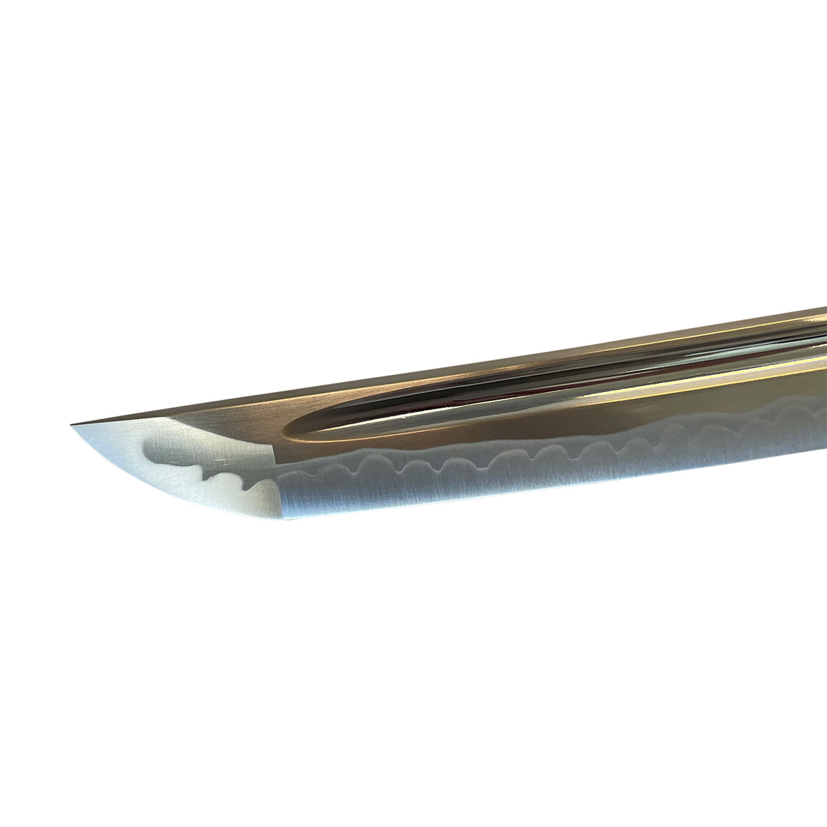Wunderbar ausgewogen und hochwertig ist die Klinge. Die Klinge wird mit zwei Mekugi gehalten und ermöglicht so eine stabile und ruhige Handhabung.