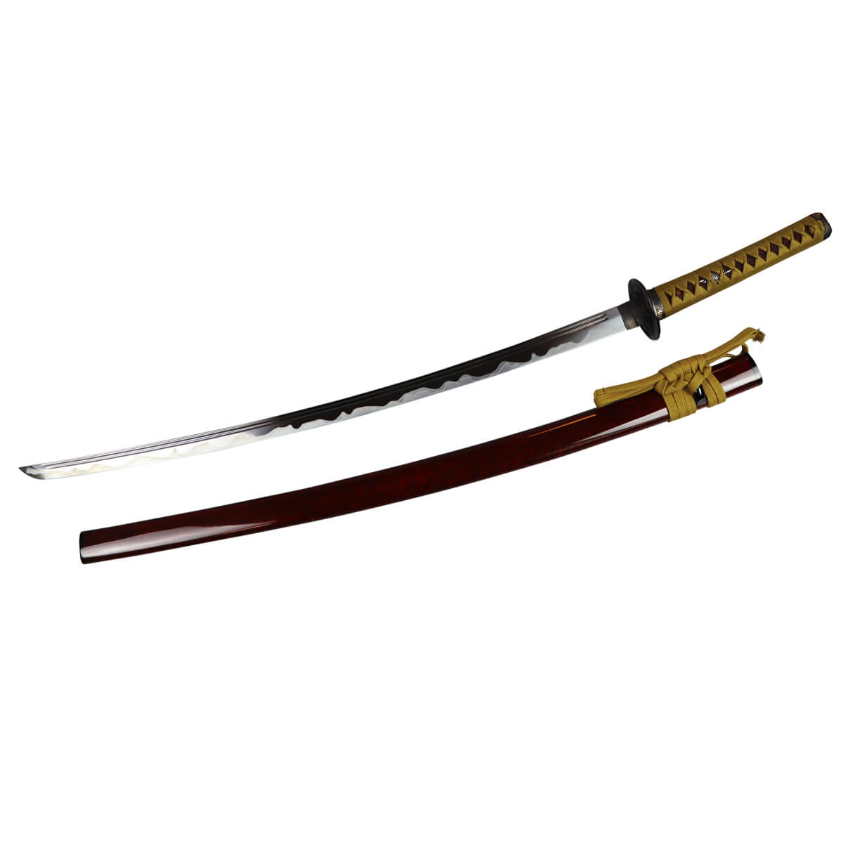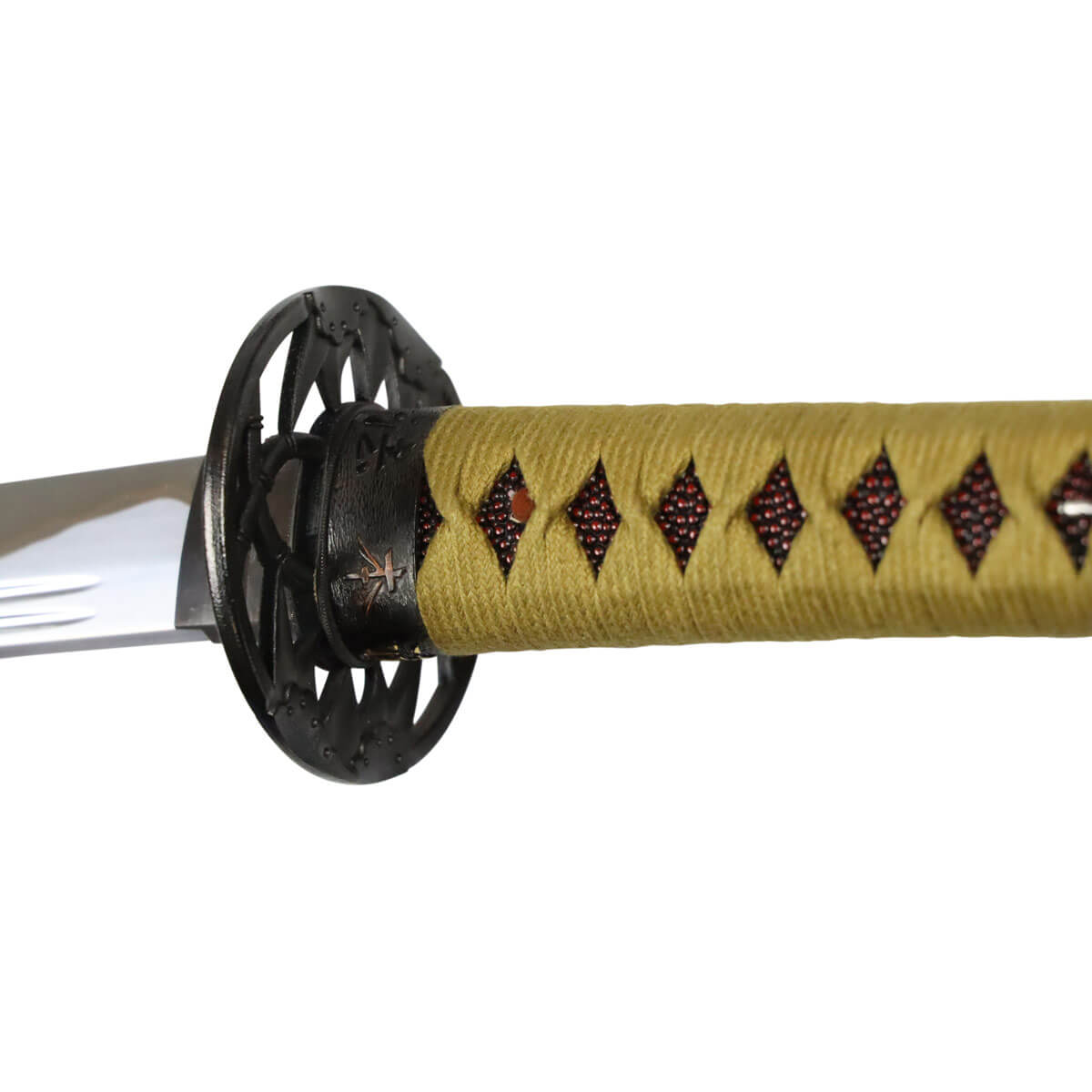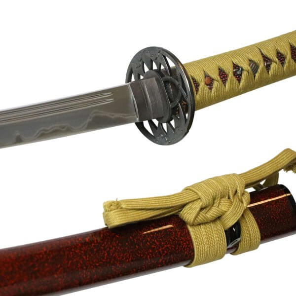 Neben den typischen Merkmalen japanischer Schwerter für das Iaido Training, wie die stumpfe Klinge aus einer Zink-Aluminium Legierung, besitzt dieses Schwert eine außergewöhnliche Optik.