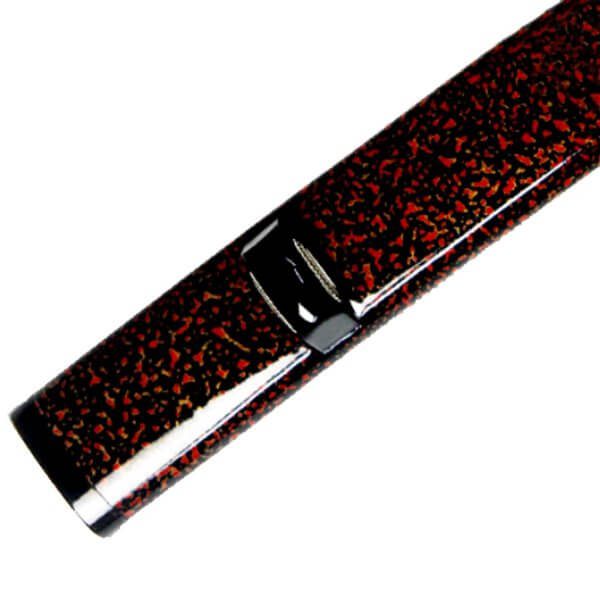 Kinri schwarz-glänzend mit rot-goldfarbenen Metalliclacksprenkeln.
