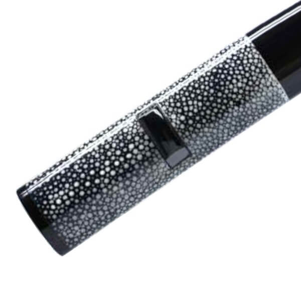 Diese Schwertscheide für Iaito und Shinken besitzt rund um den Bereich Kurigata bis Koiguchi eine Same Umwicklung. Der Rest der Saya ist glänzend schwarz lackiert.