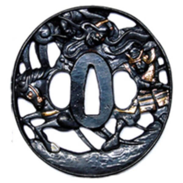 Motiv reitender Samurai. Ca. 79mm x 76mm. 106g.