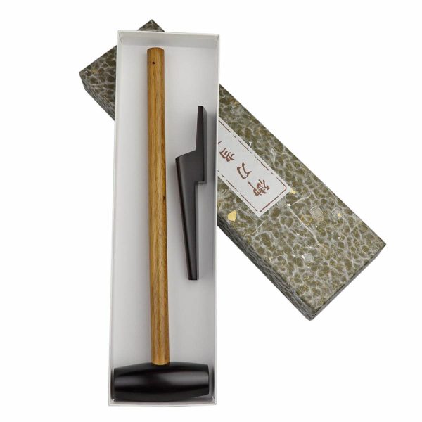 Holzhammer und Splint für das Auseinandernehmen eines Samuraischwertes.