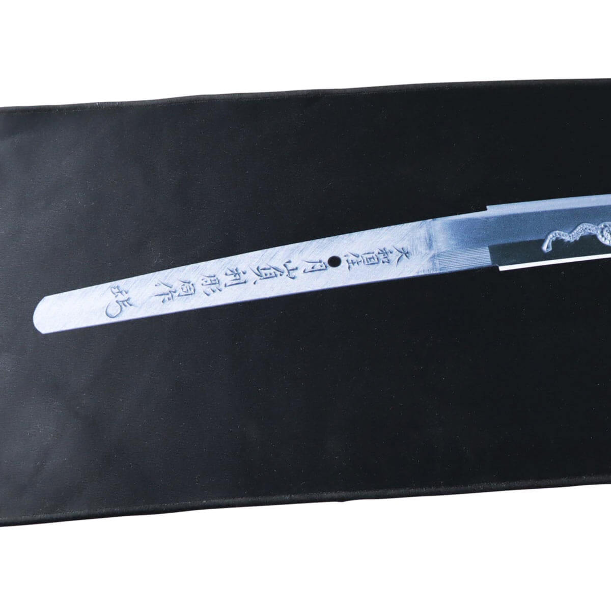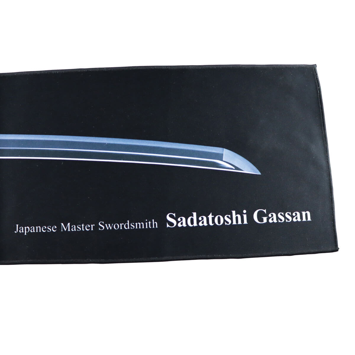 Auf der Matte ist ein Kunstdruck eines japanischen Schwertes abgebildet. Es ist eine Arbeit des Meisterschmiedes Sadatoshi Gassan, dem Kopf der Gassan Schule, die seit dem 12. Jahrhundert existiert.