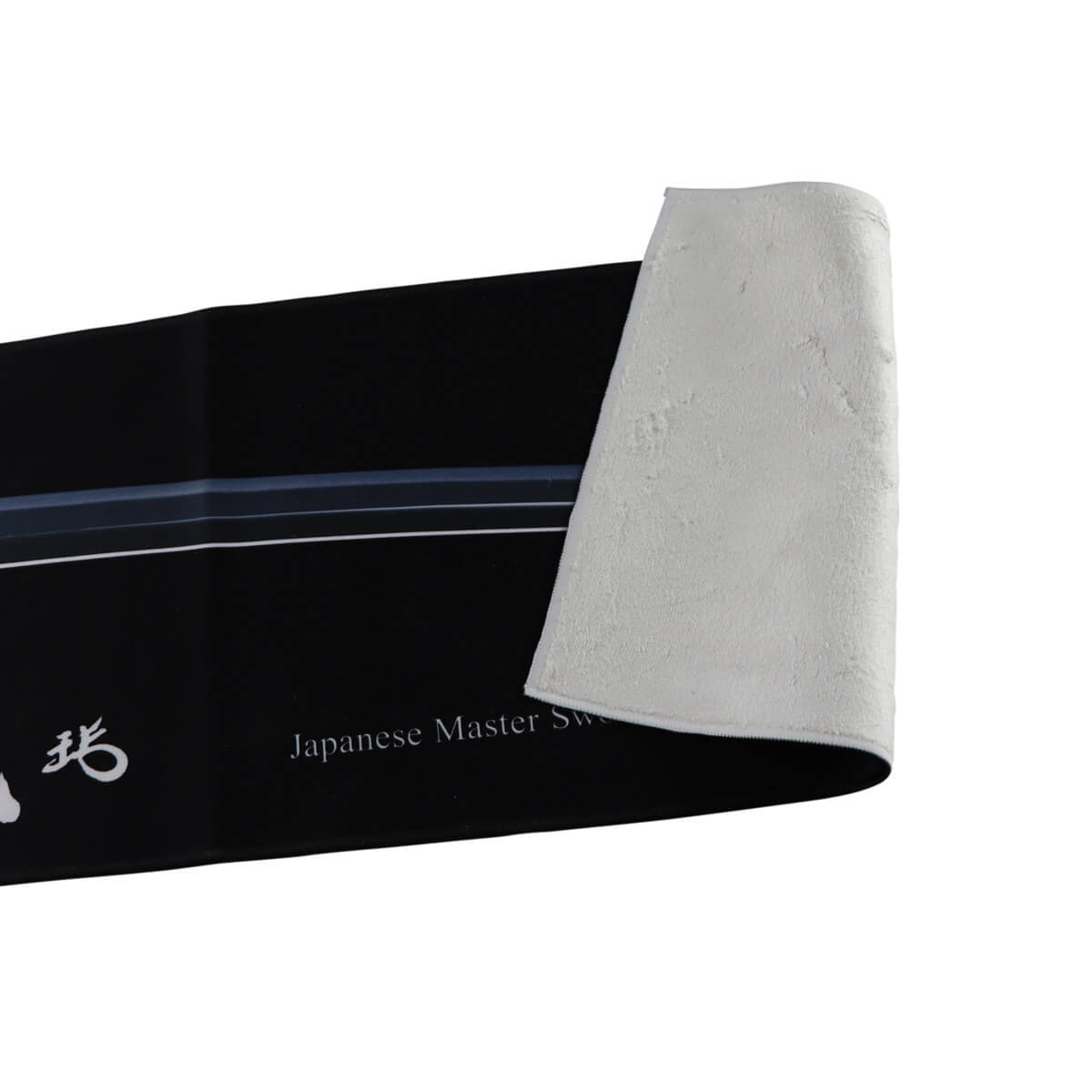 Die Unterlage aus Mikrofaser schützt die Klinge vor unbeabsichtigten Kratzern. Die Oberfläche ist wasserabweisend, damit das Tuch nicht feucht wird und so die Klinge beschädigt. An der Unterseite verfügt die Matte über eine dünne Polsterung.