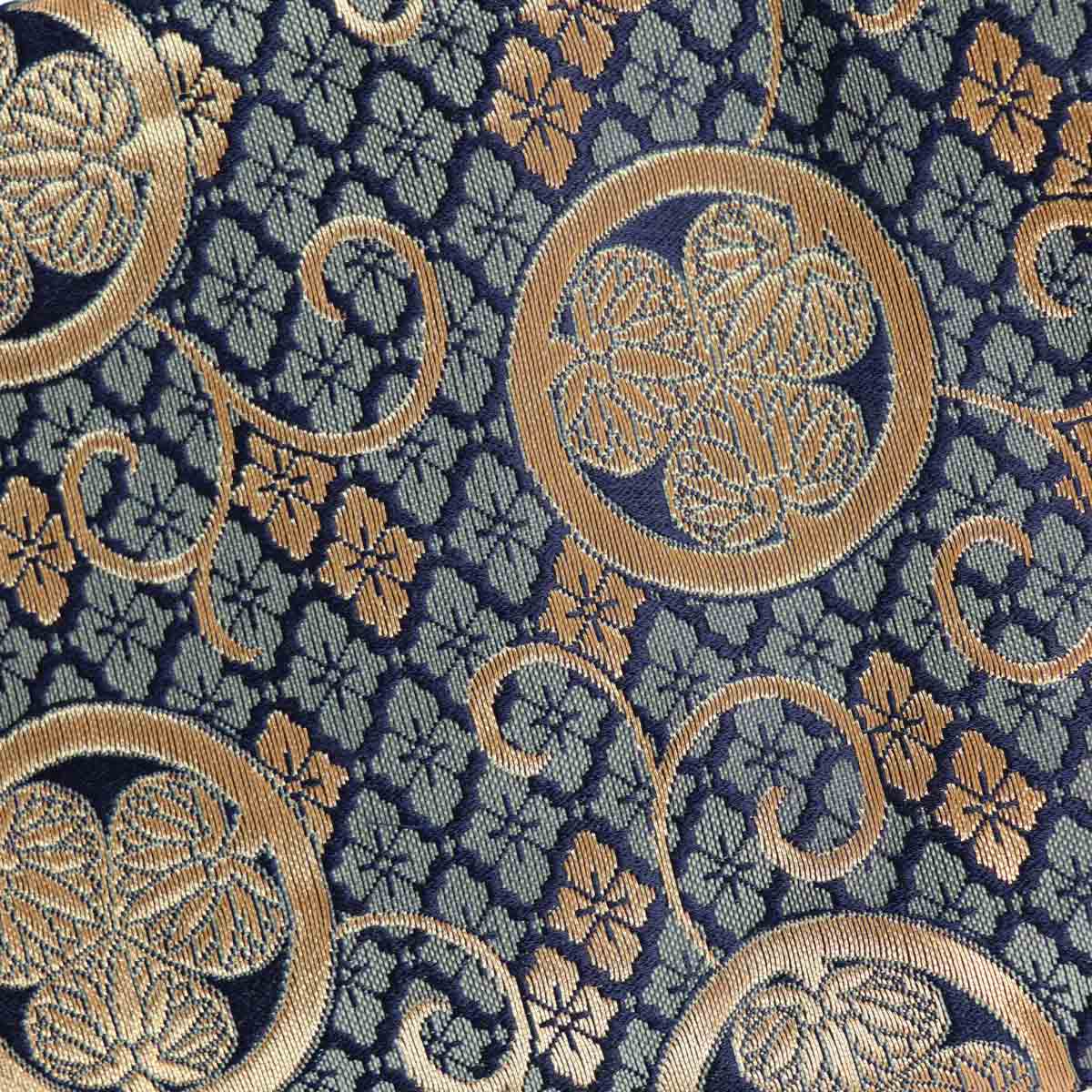 Grundfarbe Blau mit goldfarbenen, eingestickten Mon Symbolen.
