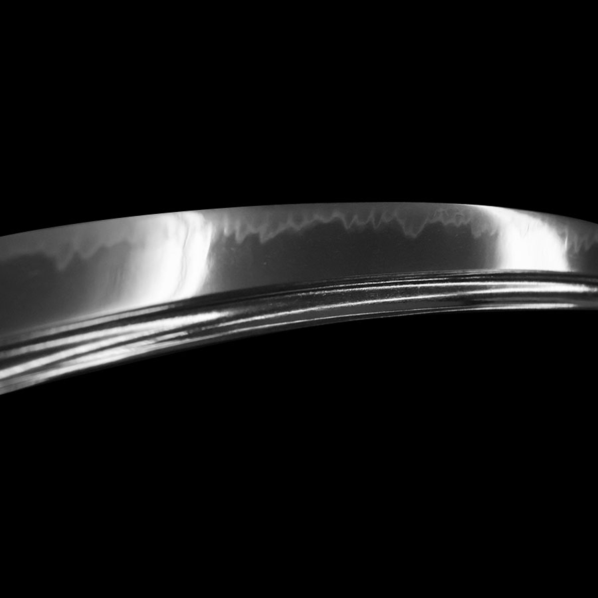 Das Jigane besteht aus fein verdichtetem Ko-itame-Hada, hell und sauber ausgeschmiedet. Die Klinge besitzt ein Bo-Hi, wodurch das Schwert leicht ist und eine sehr gute Balance besitzt.