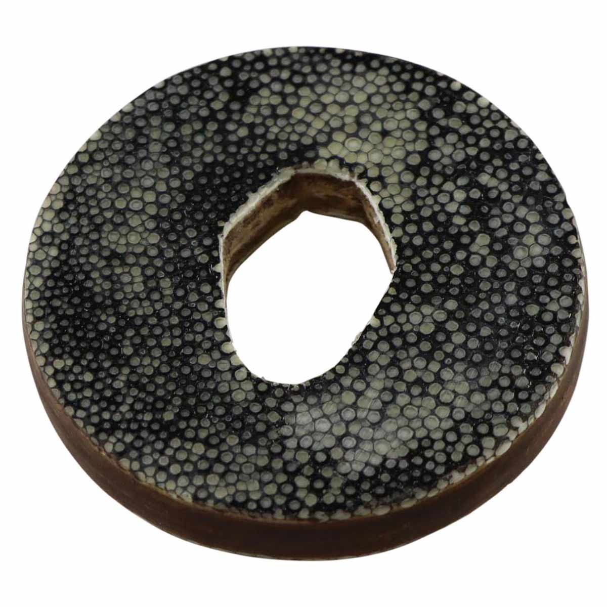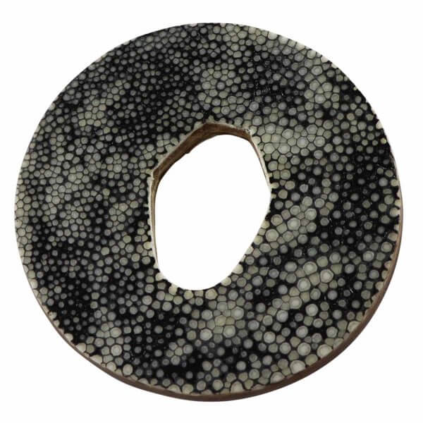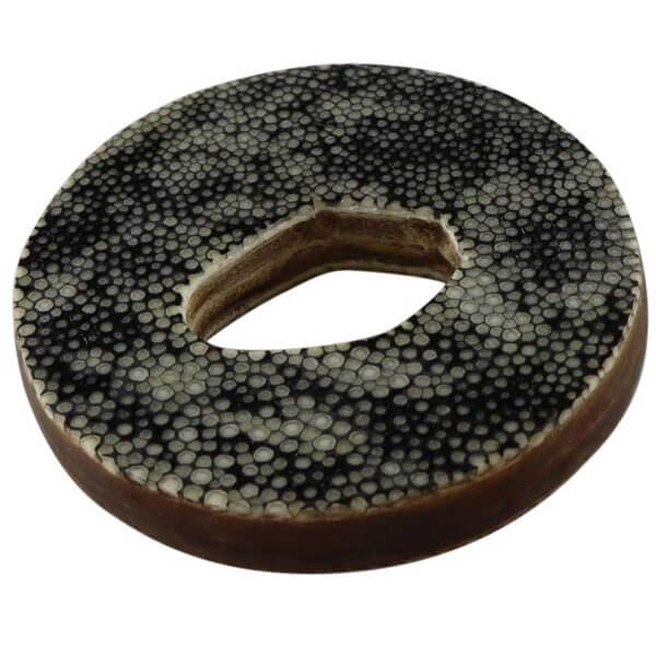 Zeer robuuste leren tsuba voor bokken. Een echt handgemaakt product met een Same oppervlak. Same is het materiaal dat ook wordt gebruikt voor bijvoorbeeld het handvat van het zwaard (tsuka) of de schede van het zwaard (saya).