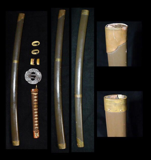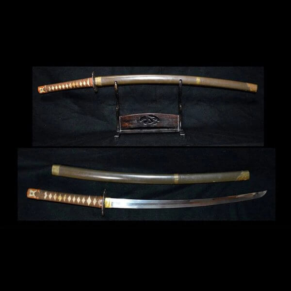 Inklusive Zertifikat der JHTKK. Die Klinge ist in einer Gunto (japanisches Militär) Koshirae montiert.