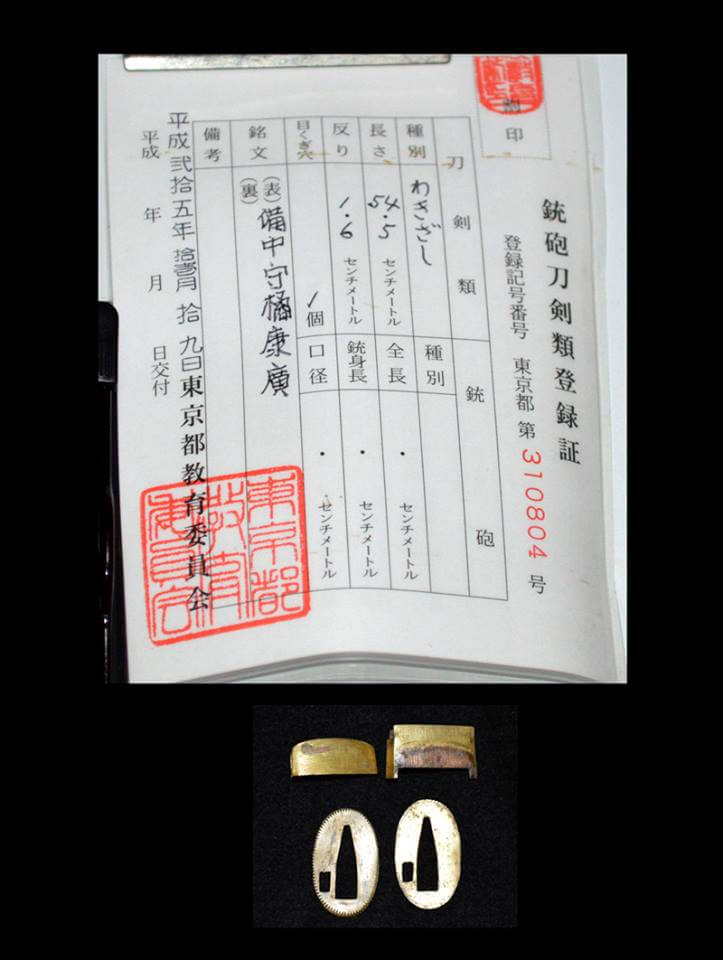 Mei (Signatur auf der Klingenangel): Bitchu no Kami Tachibana Yasuhiro (備中守橘康廣) auf Omote