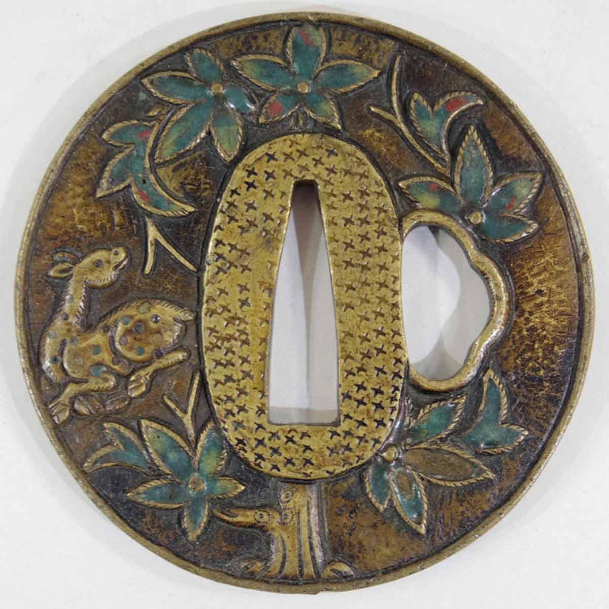 Durch die Technik können buntere Bilder erzeugt werden, als es bei reinen Metall-Tsuba der Fall ist. Das macht den besonderen Reiz dieser Tsuba aus. Charakteristisch ist auch das Kreuz-Muster, das auf dieser Tsuba zu sehen ist.