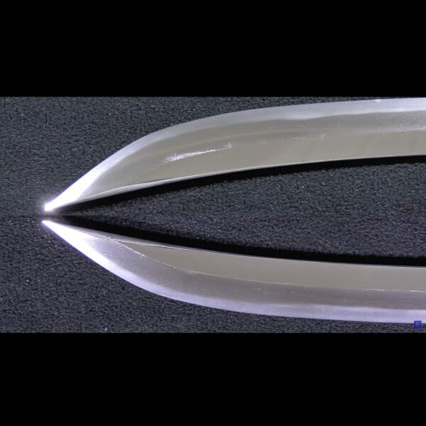Nagasa (Klingenlänge): 37cm, Sori (Klingenkrümmung): 1.5cm. Die Klinge hat ein kleine Scharte im mittleren Bereich.